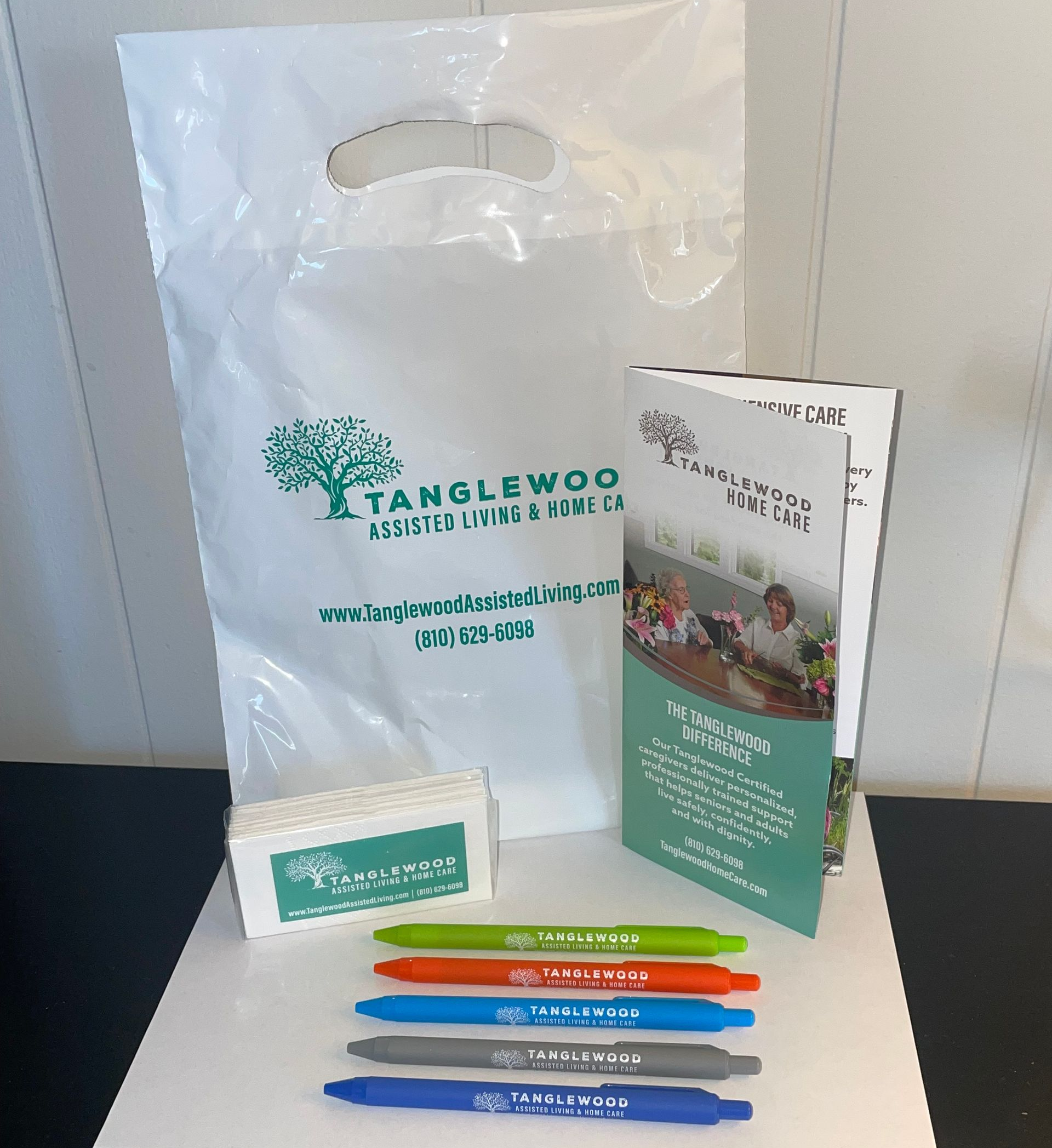 By combining trade show materials, printed marketing pieces, promotional items, and a website, we helped Tanglewood Home Care introduce their services to the community in a clear and professional way.