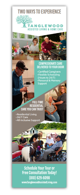 - A tri-fold brochure explaining Tanglewood Home Care services