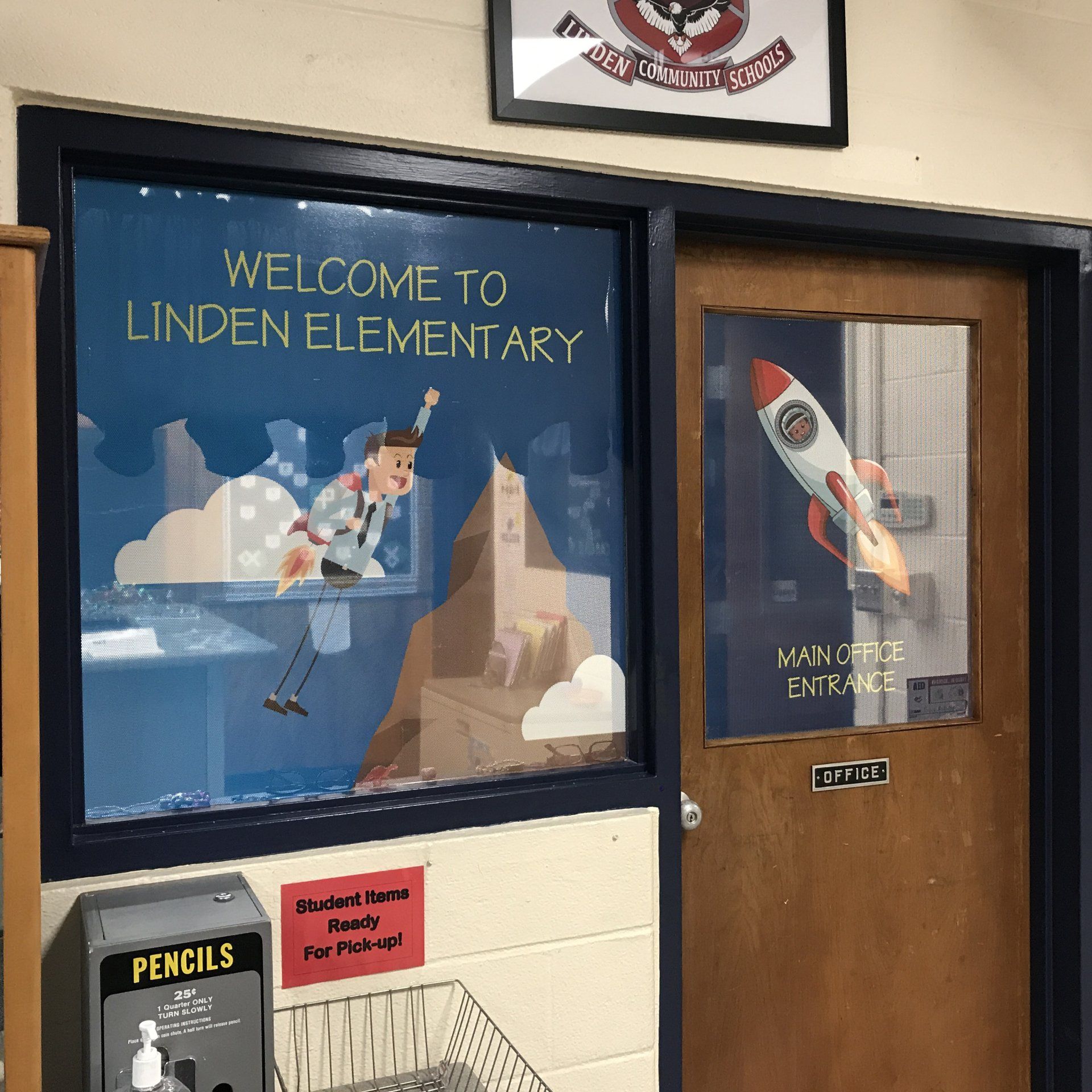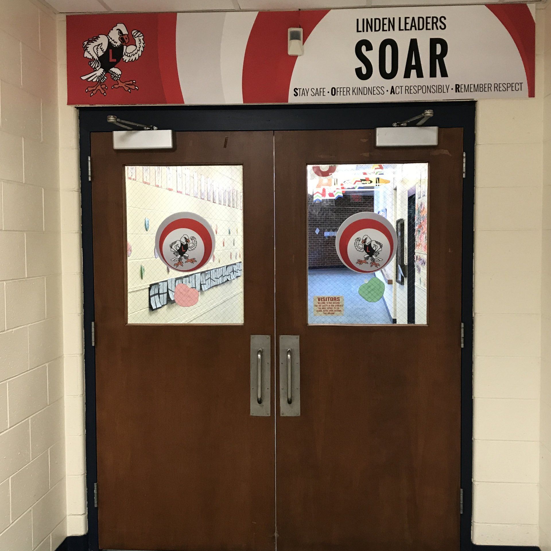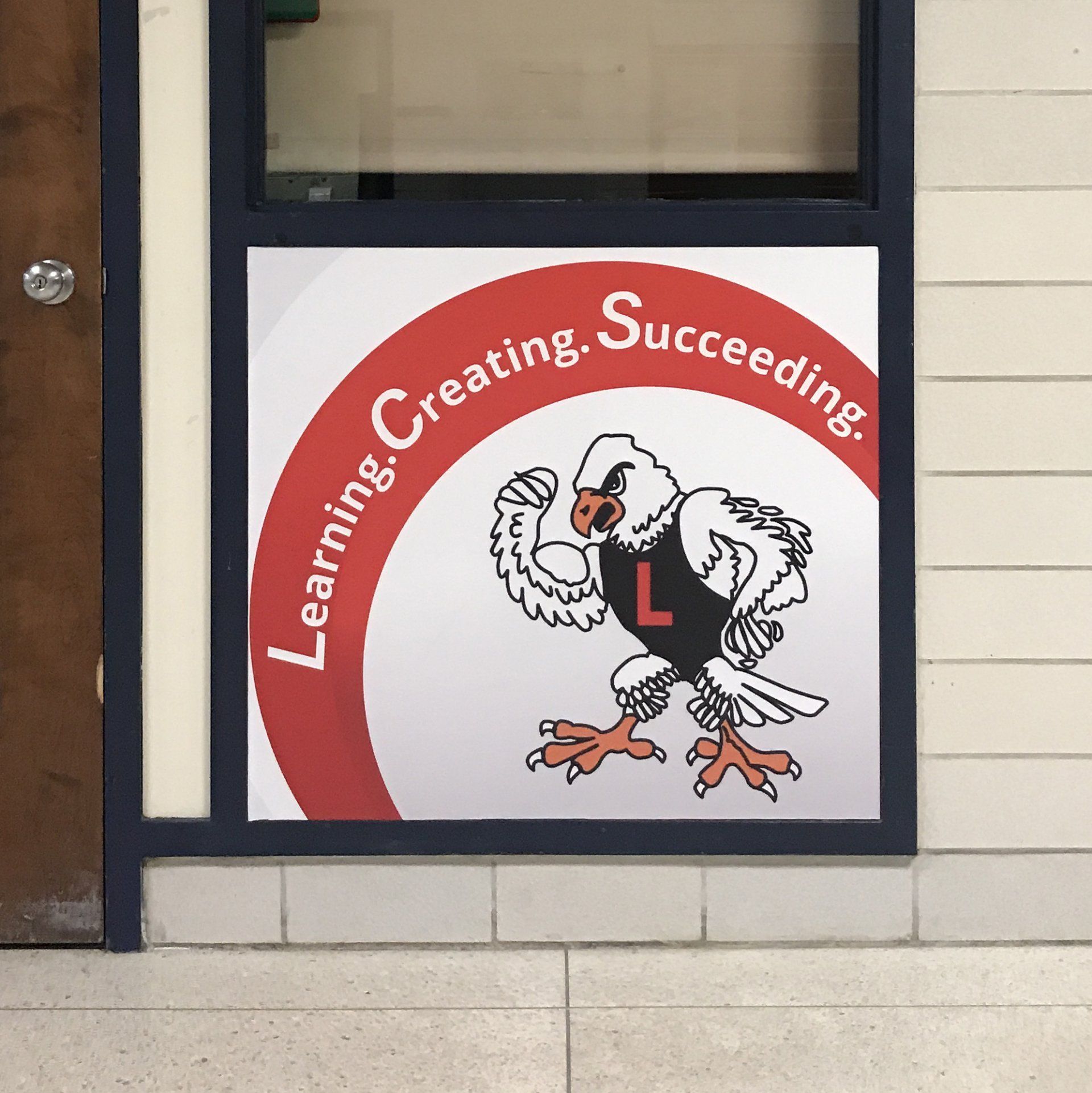 recently updated to a fresh face with CUSTOM Vinyl Wall and Floor Clings! Linden Eagles can spy their BRIGHT, VIBRANT logos around school reminding them to S.O.A.R. with Linden Community Schools' core values: Learning, Creating, Succeeding. These new graphics bring the Linden Community Schools'